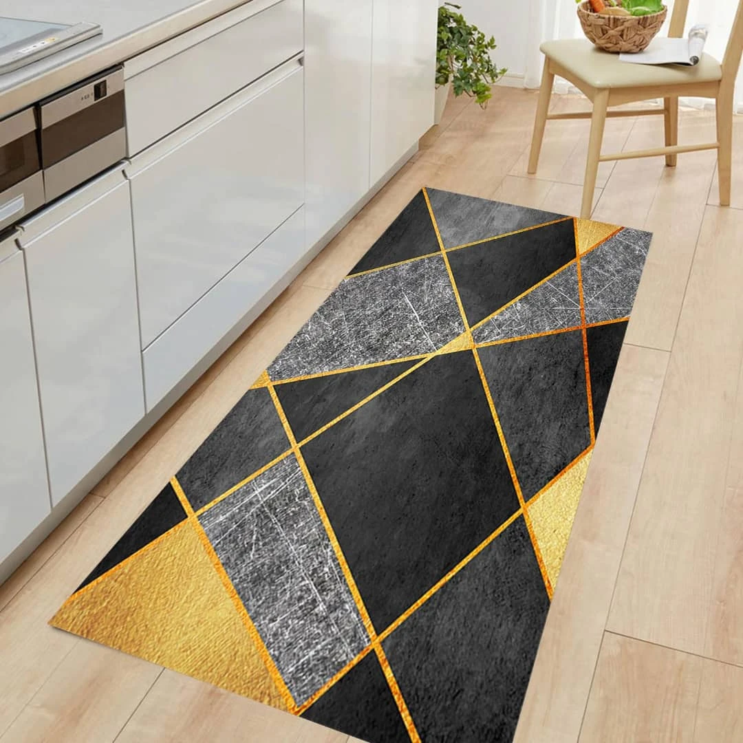 Il y a une bordure décorative autour du tapis, avec un motif discret qui encadre le motif principal.