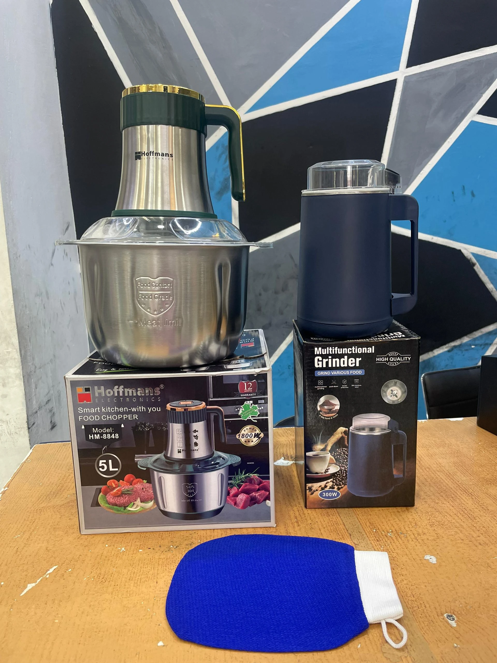 👉 Ces produits appartiennent à la catégorie électroménager de cuisine (hachoir, broyeur) et accessoire de soin corporel (gant exfoliant).